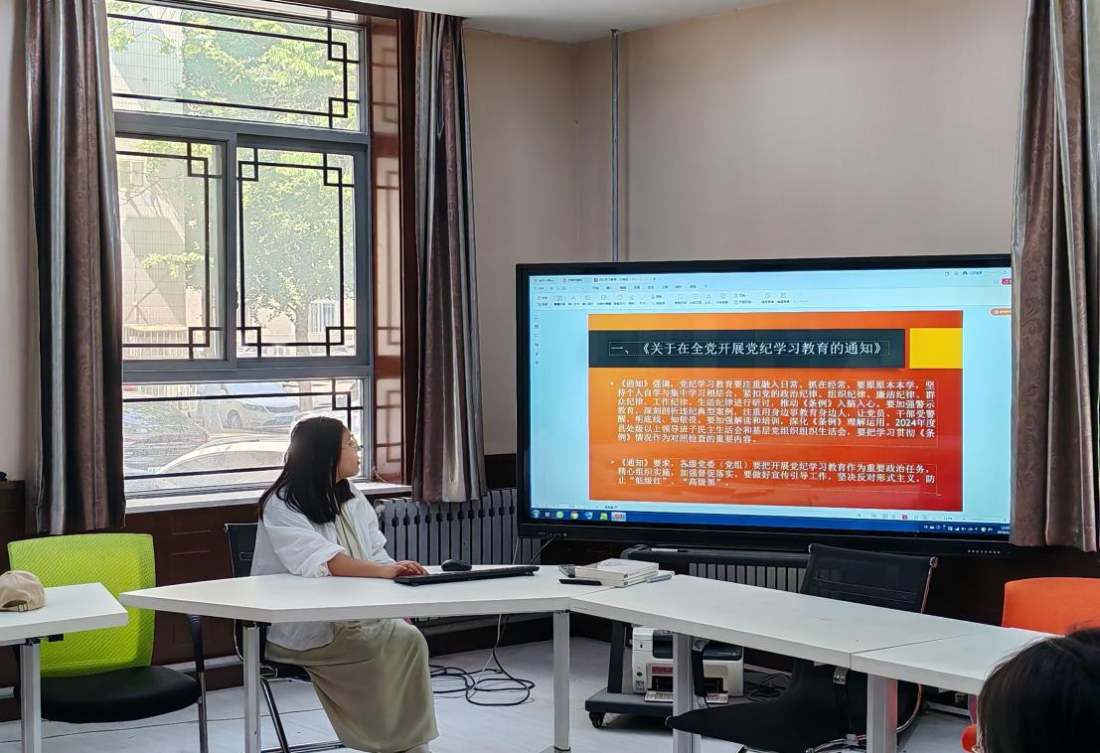 本次专题教育由党支部组织委员石广洲同志主持并带领支部党员共同学习《中国共产党纪律处分条例》。他重点讲述《中国共产党纪律处分条例》的总体要求和适用范围,违纪与纪律处分,纪律处分运用规则等三个方面的内容,使支部党员对新修订《条例》有了更加全面系统的掌握,对党的纪律要求有了更清晰深刻的认识。随后,支部党员刘海颖同志围绕《关于在全党开展党纪学习教育的通知》和《中国共产党纪律处分条例》等相关内容,从《条例》修订的主要内容及其鲜明特征,违反政治纪律、组织纪律、廉洁纪律、群众纪律、工作纪律和生活纪律的行为以及相关典型案例等方面,帮助支部同志深刻认识加强党的纪律建设的重要性。