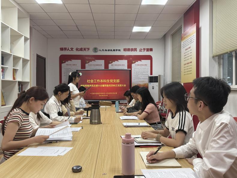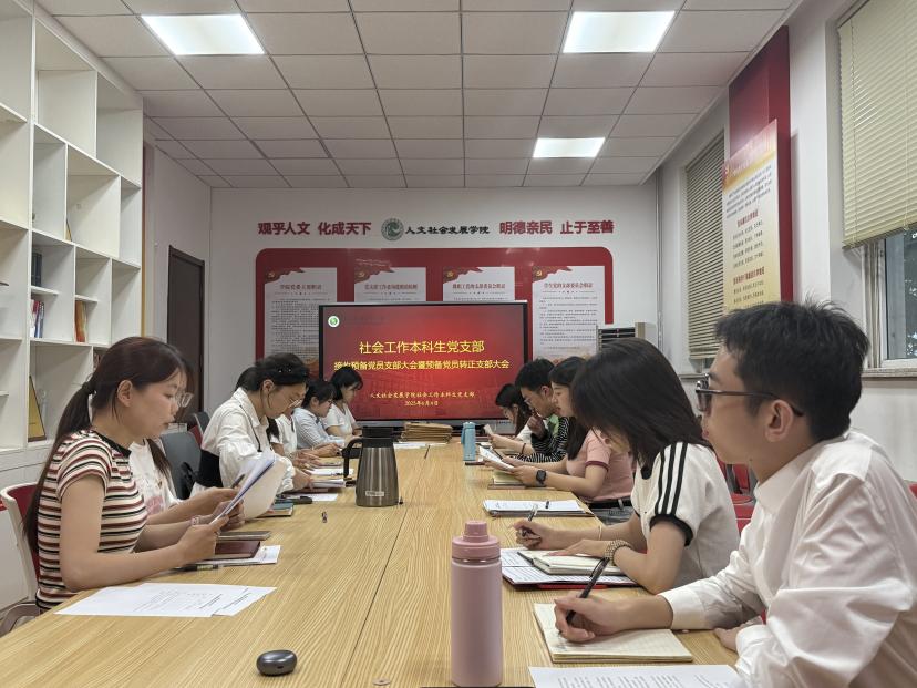 2025年6月4日,社会工作本科生党支部于6107会议室召开接收预备党员暨预备党员转正大会。会议伊始,主持人汤丽同志介绍了本次大会党员到会情况和相关议程。