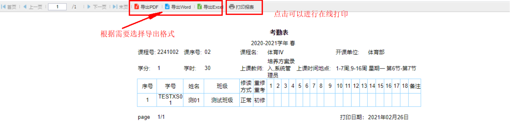 (教学日历维护、考勤与考核表打印)