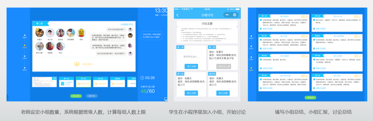 10、教师发起【分组讨论】,员工通过小程序参与讨论,员工在小程序上发表评论,老师大屏上可以查看。