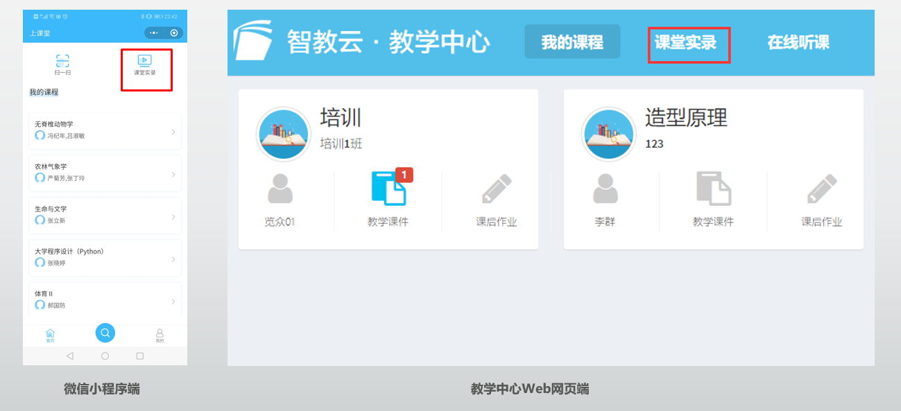 3、点击【课堂实录】,在课程列表中回看直播视频。(注意,直播教学后,在次日才能查看回放)