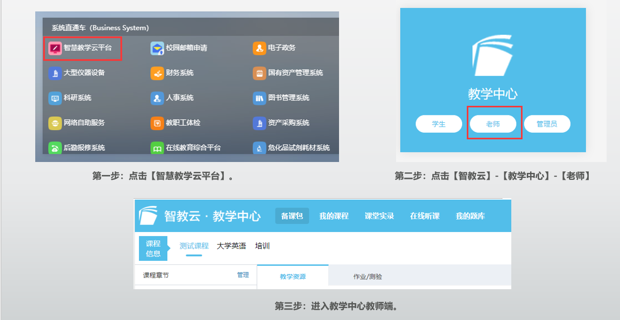 2、选择“智慧教学云平台”,登录教学中心教师端。