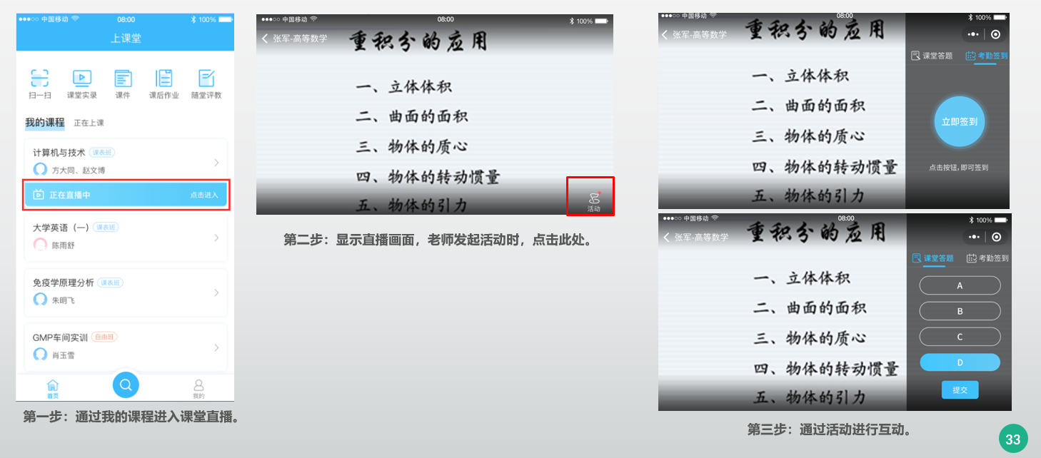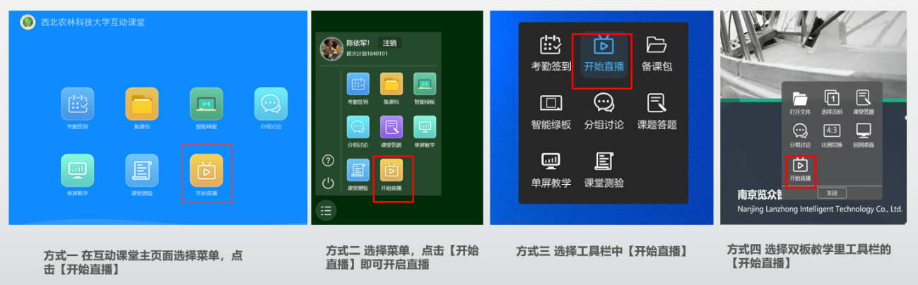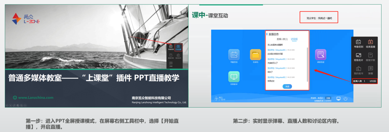 教师上课时开启直播及互动操作: