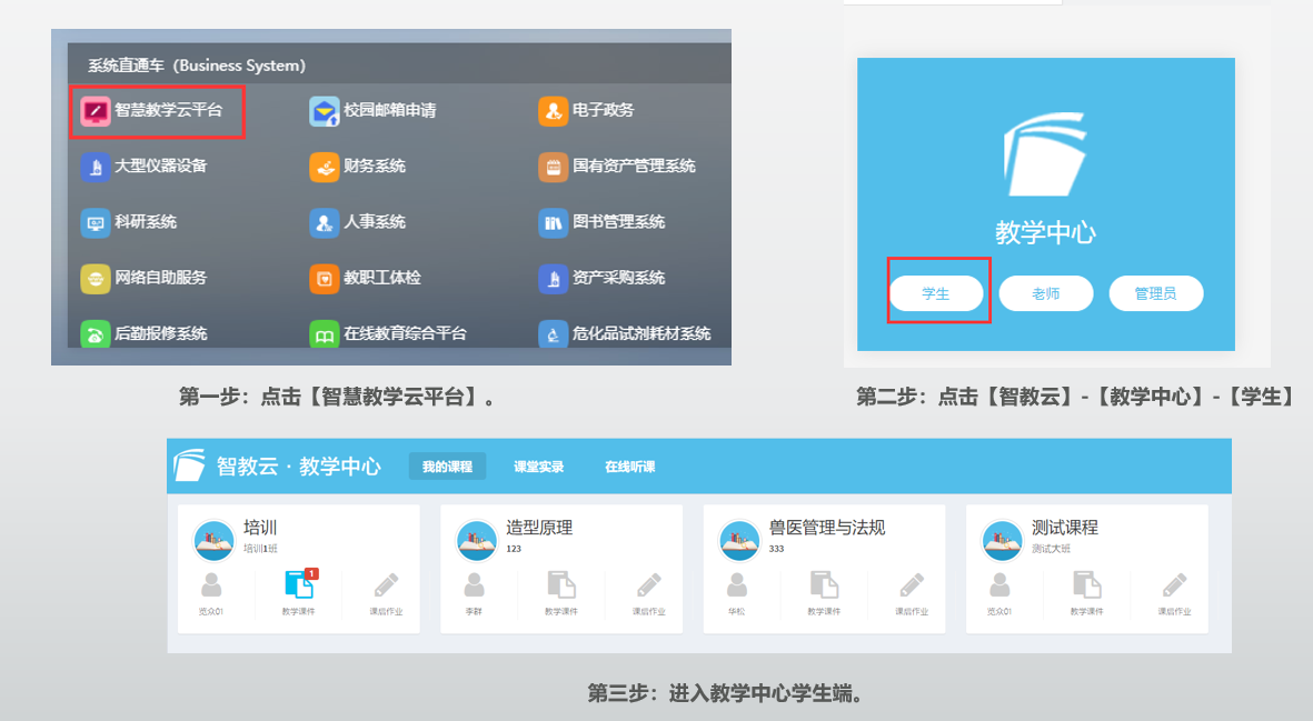 2、选择“智慧教学云平台”,登录教学中心教师端