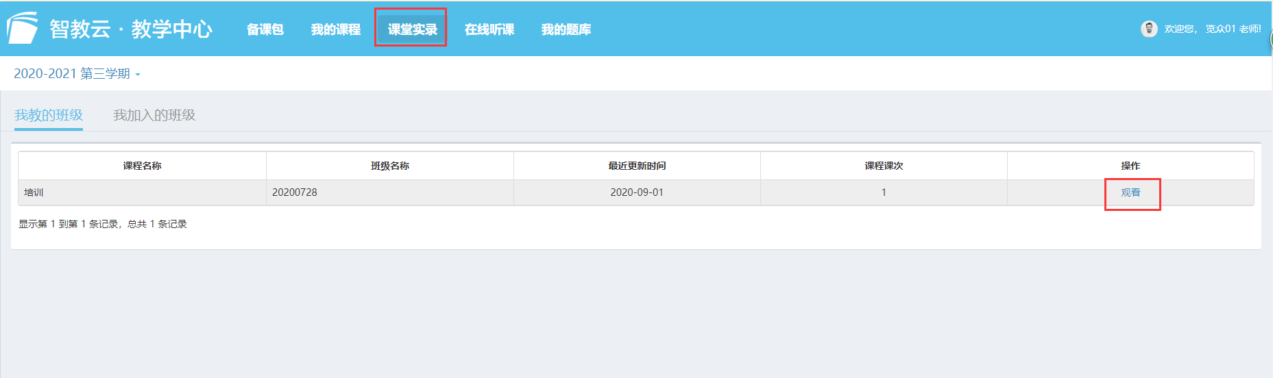 教师课后查看直播回放操作: