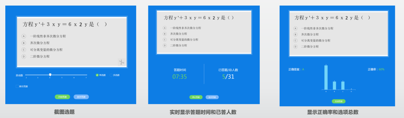 9、教师发起【课堂答题】,员工通过小程序进行答题,题型支持单选、多选和判断。