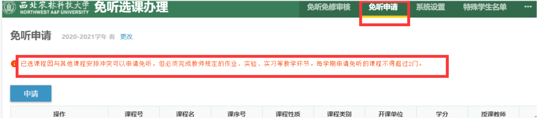 二、免听:选课中心--免听免修办理--申请免听,办理免听要求如截图所示,审批流程:个人申请--任课老师审批(个人申请完后一定要通知任课老师线上审批)--beats365唯一官方网站秘审批。