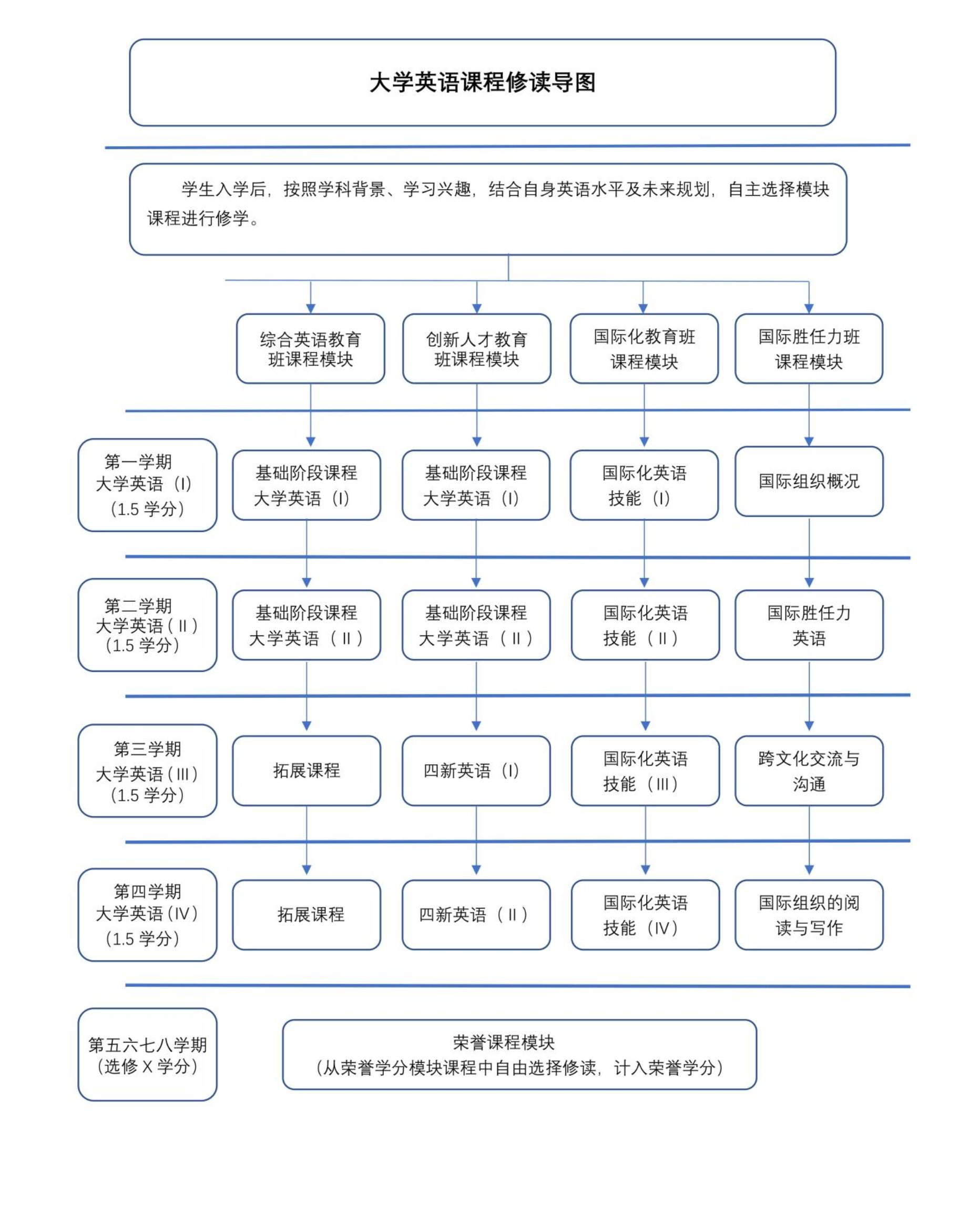 X学分为荣誉课程学分。二年级后,员工根据自己的兴趣选择修读,修读学分经认定后,计入荣誉学位课程。