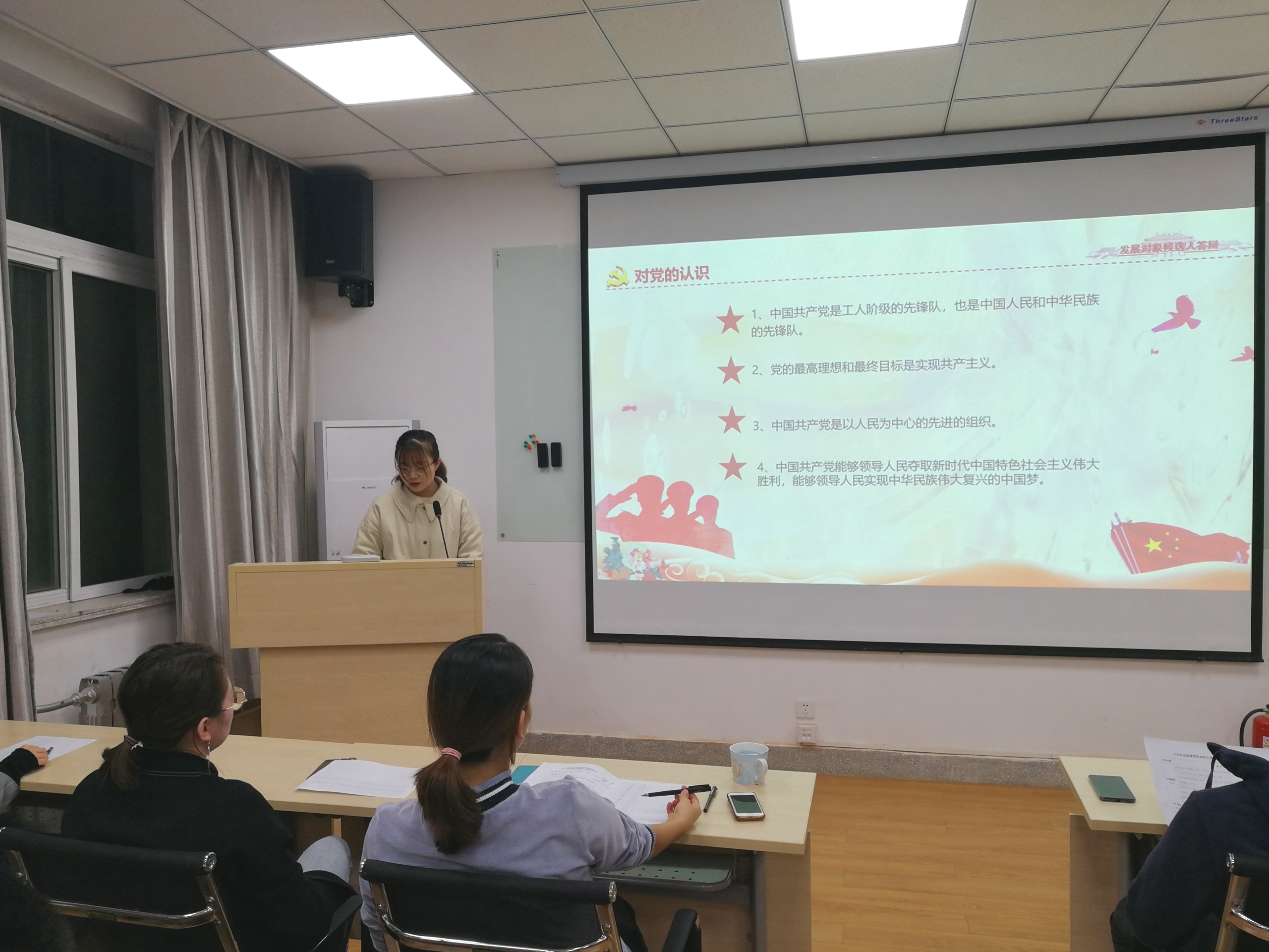10月20日和21日晚,公司分本科生和研究生两个批次组织发展对象候选人进行PPT答辩,候选人从自我分析、入党动机和在党旗领航工程中的表现等方面阐述自己对党的认识,并结合自身情况,从学习、创新创业、员工工作、理论学习等角度表现自己在日常生活中体现先锋模范作用。在各候选人汇报结束后,各党支部书记及委员对候选人的成长和进步表示了肯定,但对落实好党旗领航工程、理论学习等方面的不足也作出针对性提问和点评。候选人丛雅婷表示,“这次答辩既是一个和各位同学学习与交流的机会,更是暴露出自己的问题、发现不足的大胆剖析,也只有这样才能让我知道如何更好地向党组织靠拢。”