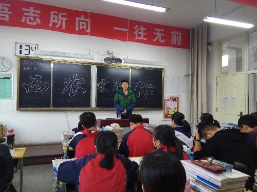 进入班级,宣讲活动有条不紊地展开。由于提前准备了宣传视频、PPT等资料并与老师取得了联系,整个活动开展的十分成功。我们一行三人,播放视频PPT,发放宣传册,拍照,书写板书“西农欢迎你”,各司其职,井井有条。