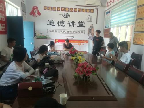 正值伏天,阳光炽热,蝉鸣聒噪,队伍冒着酷暑徒步一个多小时才抵达露沉村。可一进村子,队员们便被行道两旁葱郁的树木所吸引,村子到处绿荫,花草丰茂。队员们在村民指引下到达村委会,并受到了村干部的热情接待。