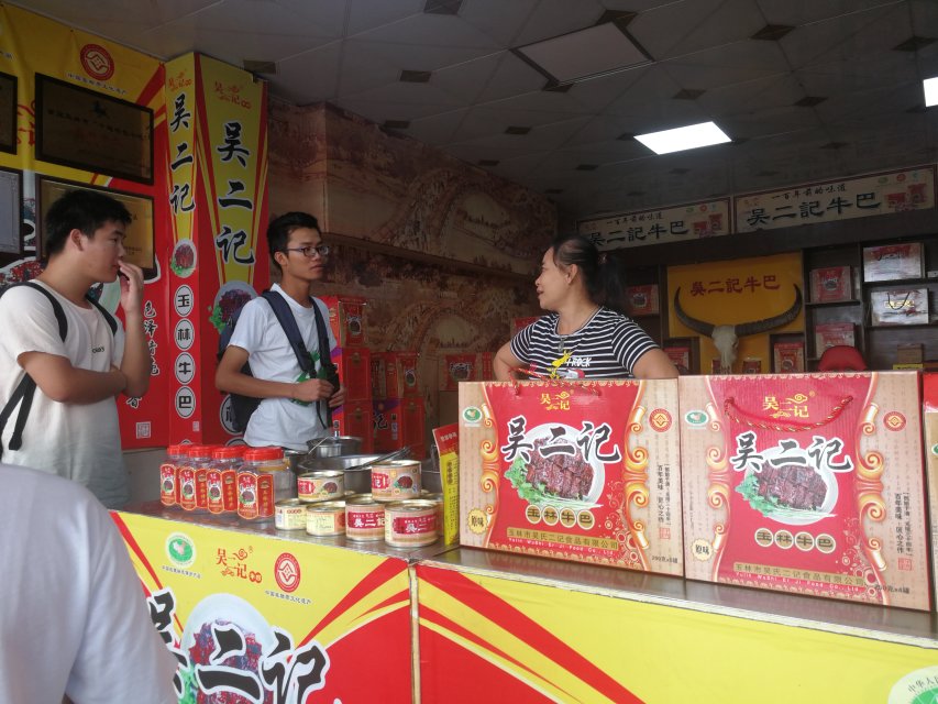 4日,队员们抵达玉林的老城区展开了调查。纵使烈日当空,这也阻挡不住队员们的热情。队员们沿着玉林老城区中老街两边的店铺展开了走访,并且侧重于走访调查其中的玉林特产店。而队员们一整天的辛苦寻访,都未找到茶泡售卖点。与之形成鲜明对比的是,玉林的其他特产如牛巴、桂圆等见诸街头巷尾。其中一个特产店的老板告诉队员们:“我以前还卖过茶泡。但这些年越来越少人了解以及使用茶泡了,所以销量也不好,干脆就不做了。”
