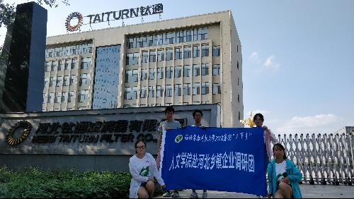 在8月12日,队员们来到当地发展效益最为良好的河北省钛通滤清器有限公司,与公司总经理进行交谈。据介绍,公司得益于当地政府和中国农业银行的优惠政策,不断发展壮大,形成管理部制的运营模式,并将产品推广出口到埃及,几内利亚等国家,成功地将本地乡镇企业推广发展。调研问询期间,我们可以看到政府政策大力支持的影子,乡镇企业与当地政府做到良性对接,促进乡村振兴发展。
