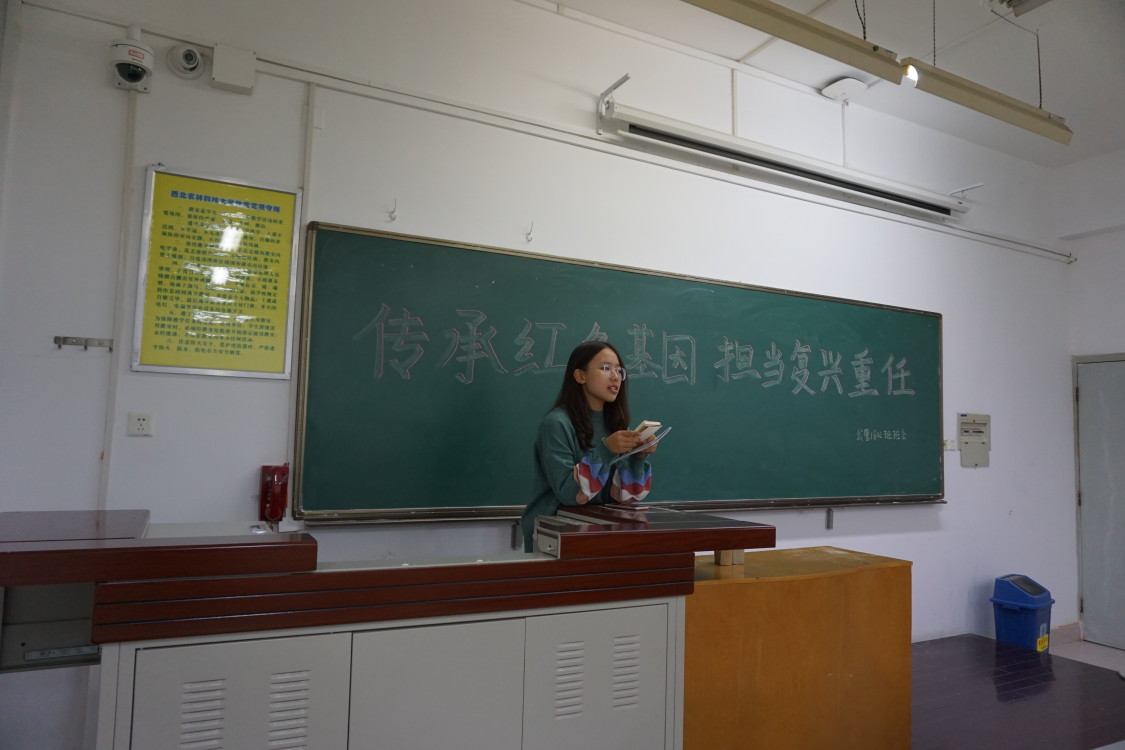 2018年10月16日星期二,公管1802班举行了“传承红色经典,担当复兴重任”主题班会。活动中,大家积极参与,取得了良好的效果。在班会中大家积极学习红色经典相关的知识,听红色故事,唱红歌,参与红色知识竞答。