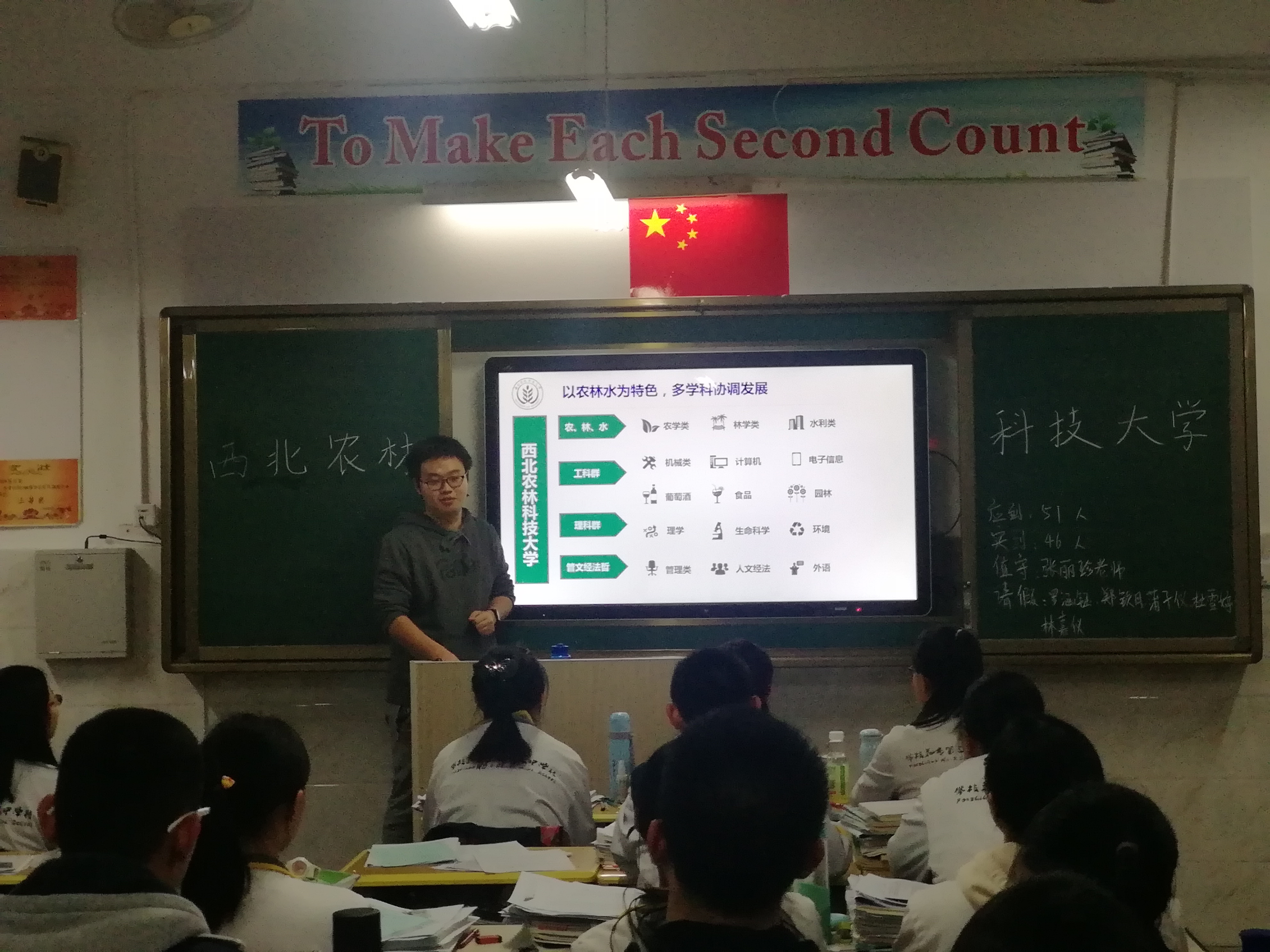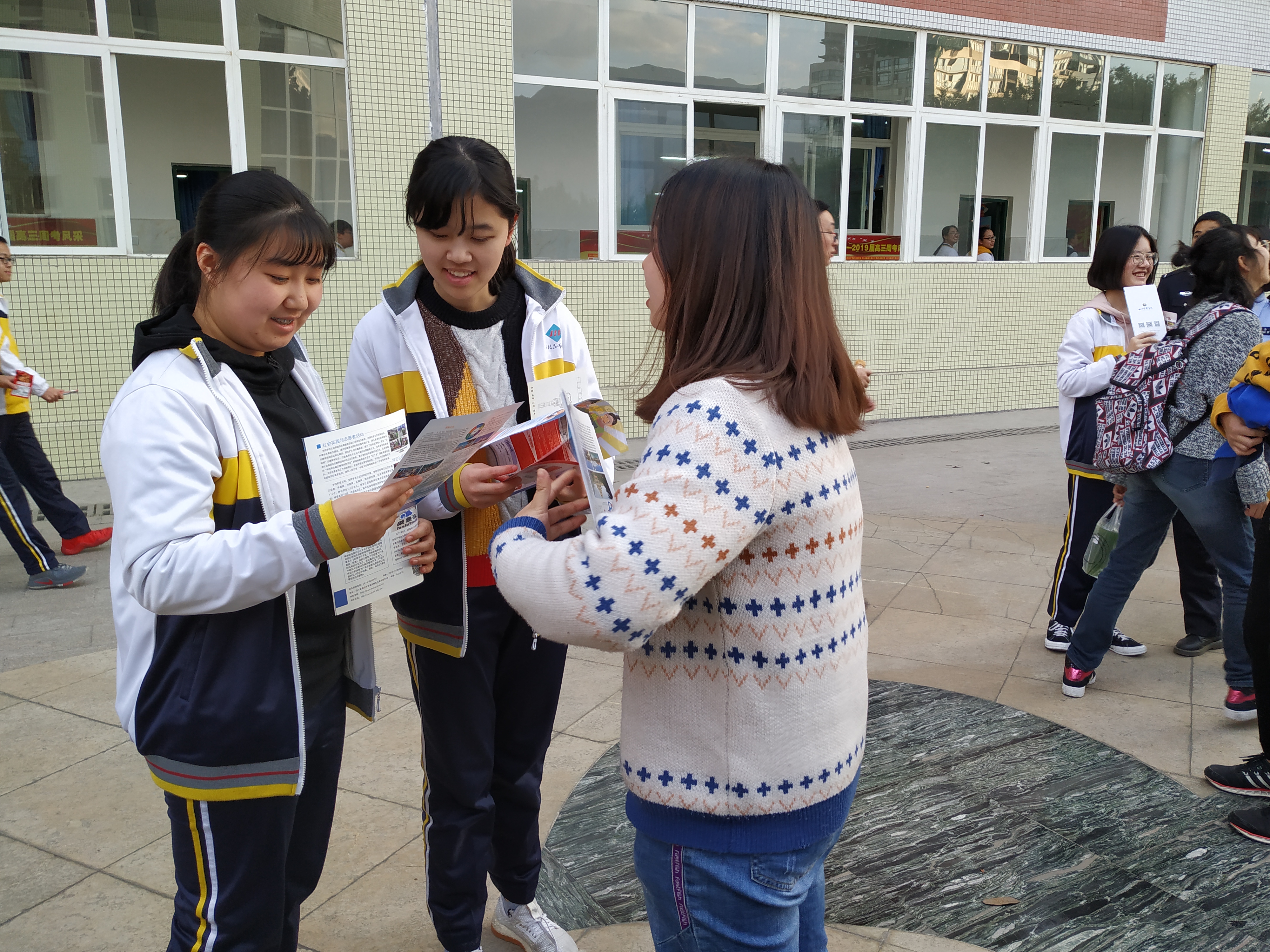 再进行了一个多小时的展台活动后,我们回访小团队根据公司统一安排进入了高2019届5班进行座谈会宣讲。