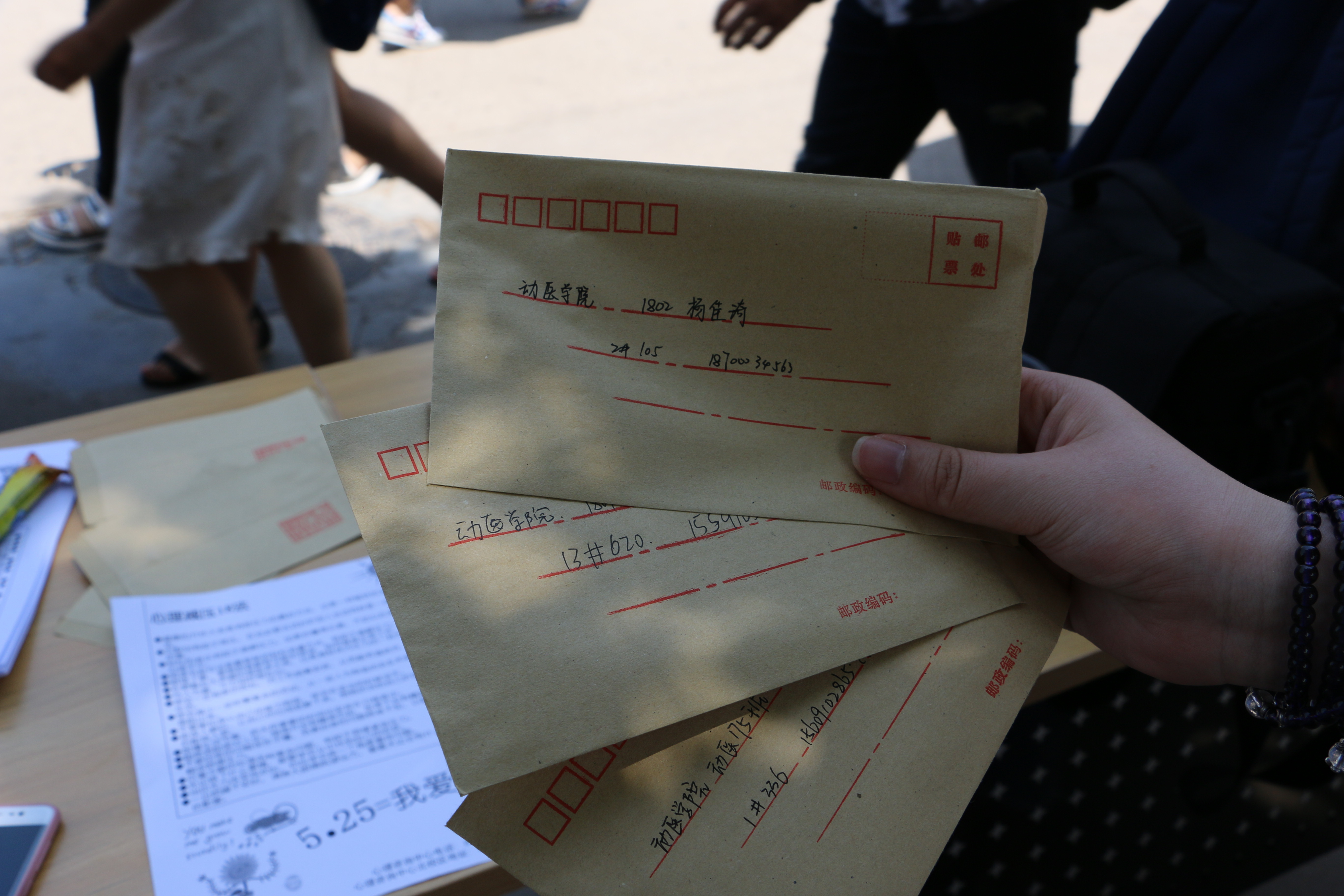 5月24日中午,活动在西雕开展,志愿者们将信封分发给有意向参加活动的同学,并在此过程中对活动进行了简单介绍。在场的同学将信件写完后可以将其交由beats365唯一官方网站心理部代为保管,并于一年后返还至本人;希望自己保存信件的,则信件由本人带走。活动直至所有物品分发完毕结束。