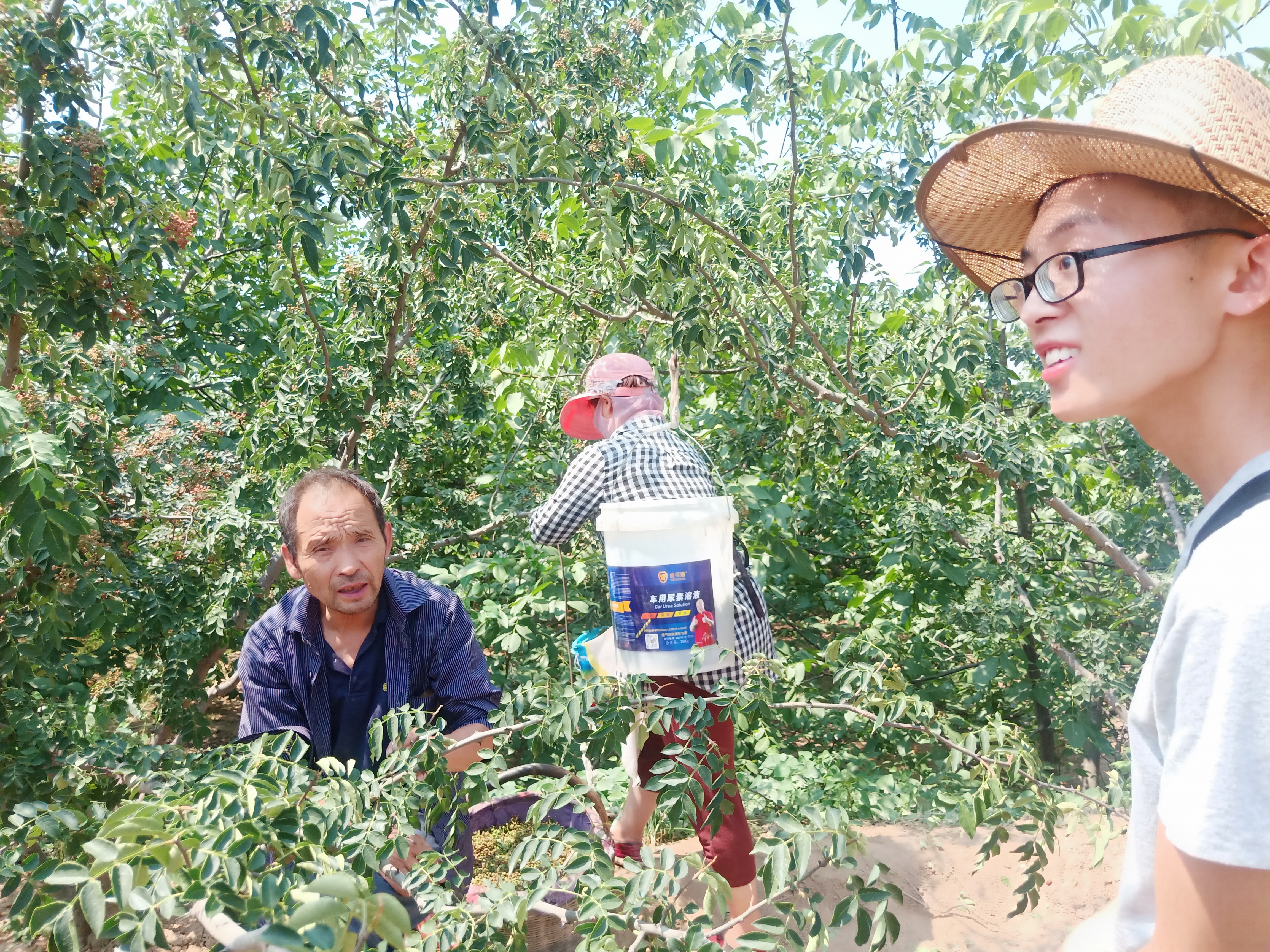 随后,队员们走进农田里见到了正在采摘花椒的农户,并与其针对农业技术需求进行了深度访谈。据了解,合阳县的农业技术传播力度较小,多数农民对于政府部门举办的农业技术宣讲活动的态度并不积极,农业知识依靠传统经验,但是基本的机械化可以满足。