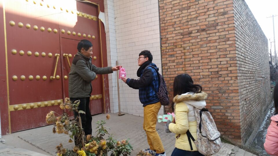 12月25日圣诞节当日,村助马柠,冯泽宇及其他几名志愿者骑车前往东卜村,带着提前购买好的苹果开始了他们的活动。据他们在初访时村妇女主任及村书记的介绍,该村年轻人较少,基本都外出务工了,现在村内的主要人口构成是老人与小孩,还有几个留守儿童以及独居老人。了解到这些情况后,我们决定在圣诞节的时候对它们进行一下探望。村妇女主任在了解到我们的想法之后很赞同,积极地支持我们的活动。早上十点,我们一行人到达东卜村,主任热情地接待了我们。我们在将苹果包装完毕之后,便跟着妇女主任开始了我们的行程。第一家是一位留守儿童的家庭,由于孩子上学不在,我们便将苹果交到了孩子奶奶的手中。奶奶拿了包装精美的苹果,了解到我们的来意之后十分地开心,表达了对我们的感谢,并希望我们能进屋里坐坐,我们在表达了对她的祝福之后便进行了前往下一家的行程。妇女主任带我们经过了一片农田之后来到了一户房屋比较破败的农户门前,敲门进去之后发现里面只有一位独居老人躺在床上,据说专门照顾他的人暂时不在。我们送上了苹果,表达了我们的祝福,老人十分开心,说希望我们有空可以多去看看他,他的身边很少有年轻人陪伴,我们说我们会的。就这样,我们跟随着妇女主任的步伐,迎着冬日的暖阳,走访着那些需要我们探望的人。一路上妇女主任还跟我们介绍了村子的历史,村子未来的发展前景,还带我们去看了村里一处很有年代感的庙,通过她的讲述,我们对村子的了解更多了!大概一个小时后,我们走访了十几户人家,老人们接到包装精美的苹果后都露出了暖心的笑容,我们也老人们亲切地握了手。