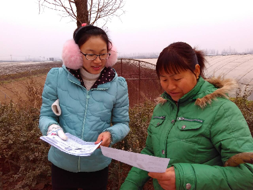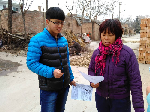 1月8号下午两点,陵东村村助梁艳、刘岳及人文社会实践部志愿者一同来到陵东村,进行“雾霾自我防护小常识”的宣传。志愿者们首先从村委会两边的村户开始,一一发放事先制作好的宣传单,并对老人及文化水平较低的村民进行详细的讲解,让他们充分了解什么是雾霾、雾霾是怎样形成及加重的、雾霾会对人体健康造成哪些危害以及如何做到自我防护等等,为期共计两小时。
