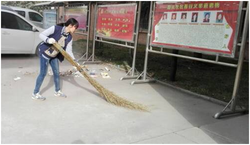 陵东村的发展相对其他村子发展较好且非常注意村子的整体象形,注重文化、经济、政治等各方面的发展。应村主任的要求以及我们在雷锋月举办活动的需要,我们决定对陵东村整体上进行清扫,我们将志愿者分工,分别进行打扫村委会、清扫街道、清理墙面的小传单等。虽然有些志愿者还是第一次拿起大扫帚,但他们依然坚持,弘扬雷锋精神,还陵东村一个干净整洁的面貌。在工作中我们与村民一起劳作,加深了我们与陵东村的交流,使得村助形象得到了提高。