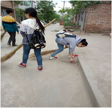 4月27日下午3点钟,两名村主任助理加上三名志愿者集合进村。我们首先来到村长家中,了解村子最近一周的情况,接着又向他说明了我们进村义务劳动的想法。活动得到了村长的支持,在他的指导下我们集中清理了几个重点区域。经过两个小时的劳动,村内环境得到了很大改善,我们的活动得到了村长和村民的认可,内心充满了成就感。