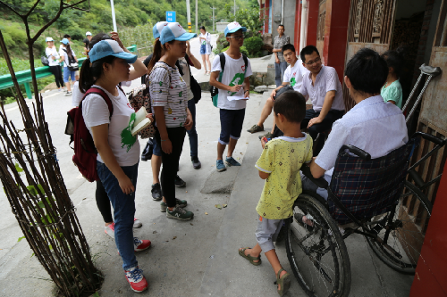 早上7点10分左右调研队出发,经过一个多小时的车程到达此次调研目的地—迎新村。在上山途中,队员们遇到了当地村民,并与他们进行了深入交流,进一步了解到迎新村的发展现状、扶贫政策的落实情况以及林地现状,掌握了一定的科学资料。随后,队员们到达中厂镇迎新村村民委员会,同村主任和支书深入交流,获得了一些新的认识。吃完午餐,队员们经短暂休息调和拍照留影,便赶往下一个目的地—白河县中心敬老院。