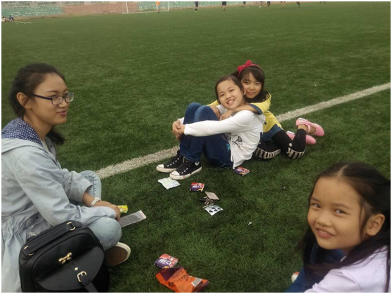 陵东村有自己的小学,所以每逢周末村子都会有很多的小员工进行游玩嬉戏。在与他们交流中了解到很多员工对于老员工很向往,对大学的事物感到很新奇,个别的同学还没有去过西农,都很希望观赏下西农,初步了解大学,形成一个印象,成为以后的奋斗目标。在与小员工们交流后,两名村助决定带几名孩子去西农看一看,让他们了解一下大学的全貌。3名小朋友与村助一起骑车来到了西农,带他们先后参观了三号教学楼,让她们感受历史的厚重与学术的庄严,在对图书馆进行观赏时,小朋友们面对如此多的图书感到无从下手,接下来带她们去了田径场,观看一下西农某院的足球比赛,小朋友们感到很兴奋,准备送她们回去时路过了篮球场,小朋友们跃跃欲试,但是并没有篮球给他们玩耍,她们表现出了些许的失落。快到傍晚时,村助又骑车将他们送回。