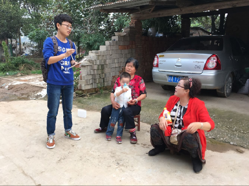 27号下午,天气凉爽,秋风徐徐。两名村助带着提前打印好的爱国主义教育宣传单来到村内。大部分村民都在房屋的庭院内闲聊,两名村助上前表明了来意,许多老人和小孩都对村助带来的的传单表示了兴趣,表示愿意听村助的讲解。村助就传单上的内容对村民进行了简单的爱国知识普及,比如中华人民共和国成立的年份,今年是我国成立多少周年,习近平上台后出台的政策,以及对中国梦的宣扬与讲解,不少年事较高的老人都有曾经抗战的经历,有一些老人也曾听老一辈人说起过抗战的故事。新中国的成立来之不易,要珍惜现在的幸福生活,是老人们共同的见解。