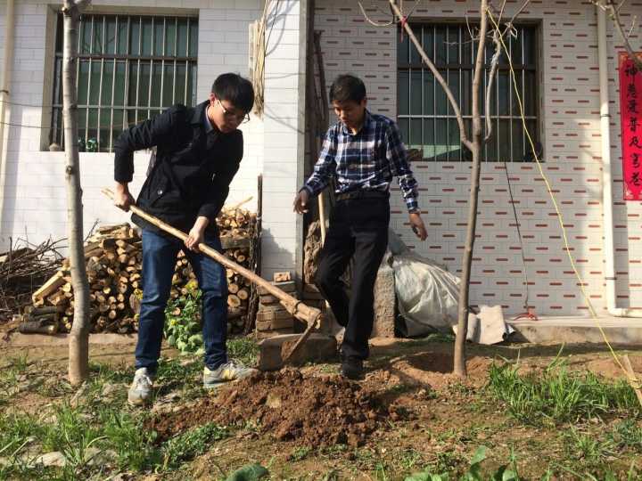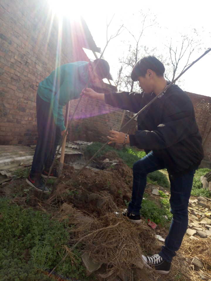 两名村助向村民借得植树工具后,分为两队前往各村民指定土地处开始植树。在这过程中,植树队伍先后遇到土地坚硬难掘、石块较多以及树苗无法在已种植的树旁存活等难题。经过不断的尝试和更改种植地区,两只队伍在村民的帮助下将所有的树苗成功种植。期间,两名村助与尚德村村民们有了更多的交流,并感谢了他们对此次活动的大力支持和踊跃参与,村民们也以衷心的谢意和夸赞回应了植树队伍。