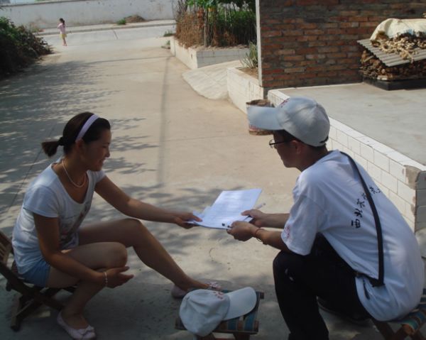7月12日,服务队分成两个小组前往杨凌周边农村确认路线;在紧接着后的调研日子里,在杨凌周边的近8个乡村,通过调查走访、发放问卷、访谈等多种形式共调查了近200多个对象,包括各年龄段的样本人群。调研中,队员们了解了许多以前不曾了解到的社会现状,并收集到与农村教育制度的改革、教育资源的有效利用相关的材料,同时,对孩子们的学习环境的了解和认识也有利于调研问题的解决。