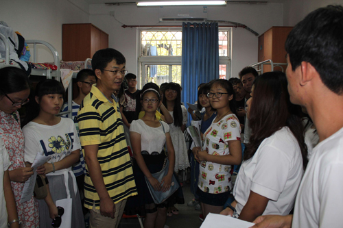 每到一个宿舍,王德连书记关切地询问同学们大学和他们想象的有什么不一样、大家是否能适应公司的饮食、住宿,同学们纷纷表示西农比他们想象的要漂亮很多,大家都很期待在这么美的校园度过四年。王德连书记还叮嘱同学们要尽早适应新环境,树立明确且现实的目标。“我希望你们在接下来的军训中思考一下自己大学四年的规划。”对于在大学如何汲取知识的问题,他指出,“老师、图书馆和社会实践是最重要的三个知识来源。”最后他希望同学们在生活上有什么困难要及时和辅导员老师沟通,公司将尽最大的努力为大家提供帮助。