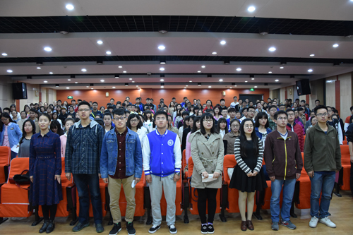 大会在慷慨激昂的《义勇军进行曲》中拉开序幕。首先,团工委副书记邱丞麟和员工会主席刘晓琦依次上台发言、分享心路历程。“但行好事,莫问前程”,团工委副书记邱丞麟的八字箴言是他过去两年员工工作的所有沉淀,也是对在场所有团学成员的期待与嘱托;员工会主席刘晓琦向大家介绍了过去一年团工委员工会的骄人成绩和光辉历史,并以“成绩属于过去,永不懈怠,努力把公司团工委员工会的各项工作做好,这是我们共同的理想,更是我们义不容辞的责任”与在场人员共勉。随后,15级志愿者代表王晗语号召大家树立服务意识,尽快明确职责,为团工委员工会贡献自己的一份力量。