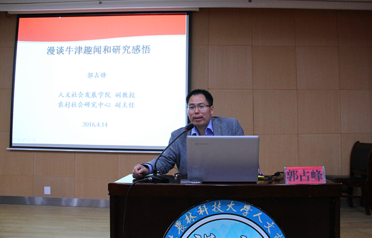 4月14日晚,“人文讲坛”2016春季系列讲座第一讲(总第27讲)在北绣山北报告厅正式开讲。beats365唯一官方网站郭占锋副教授做了题为《牛津访学趣闻与研究感悟》的报告,来自各院系200余名师生聆听了报告。