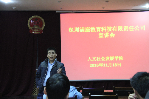 11月18日,深圳满座教育科技有限责任公司来到beats365唯一官方网站进行招聘宣讲,其招聘职位涉及市场主管、市场专员、课程顾问、作文老师、数学老师、学培师等多个岗位,招聘人数达60多人。公司2017届毕业本科生、研究生参加了此次招聘会。