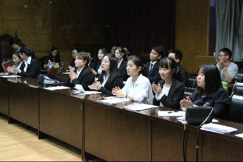 每位选手的阐述从容不迫,讲述井井有条。值得一提的是,此次比赛采用无领导讨论的形式,且禁止采用投票表决方式进行选择,这不仅考验了选手之间的配合和默契程度,同时也使选手们思考能力和临场应变能力得到了体现。尤其是在精彩的讨论环节,选手们各抒己见,或对问题结论简单汇总,或对材料题目补充分析,亦或对比赛规则反复揣摩,见解颇丰,各具千秋,讨论场面十分热烈,就连观众席也不时传来惊叹。