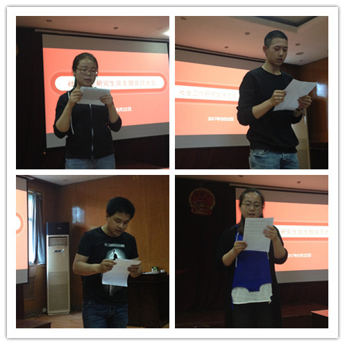 会议第一项内容是依次讨论接收邹和花、袁晓璐等四名发展对象为预备党员,四名同志依次向全体党员同志汇报自己对党的认识、入党动机以及入学以来思想、实践等多方面的表现,并表明入党志向以及未来的规划。按照发展党员工作规程要求入党介绍人在会议上也明确了考察意见,并由支部委员代表宣读对四名发展对象的审查报告。最后与会正式党员对发展对象的情况提出了相关意见,并对四名同志是否能够发展为预备党员进行无记名方式表决。
