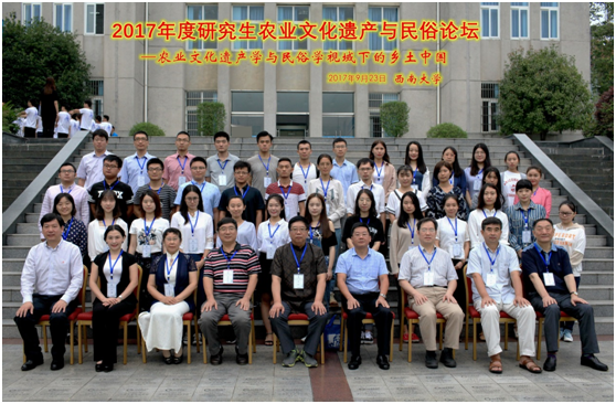 9月22-25日,由中国农业历史学会、西南大学主办,西南大学历史文化公司、中国人类学民族学研究会、经济人类学专委会承办的“2017年度研究生农业文化遗产与民俗论坛——农业文化遗产学与民俗学视域下的乡土中国”学术研讨会在重庆召开。来自中国科公司、中国艺术研究院、中国传媒大学等科研院所的十余位专家学者,以及来自澳门城市大学、中央民族大学、南京农业大学等海内外十余所高校的三十多位硕博士研究生参加会议。公司专门史专业15级硕士研究生张恒、17级硕士研究生宋宁艳受邀参加研讨会并向大会作了报告。会议期间,张恒同学作了《灵星祭祀兴衰考》的报告,文章从农业发展进程的视角,探讨了作为农业祭祀文化的灵星祭祀的兴衰演替历程,以纵向的视角拷问了灵星祭祀兴衰演替的内在逻辑。文章尤其对魏晋以降灵星祭祀的衰落态势作了分析,将该问题在已有的研究基础上作了推进。