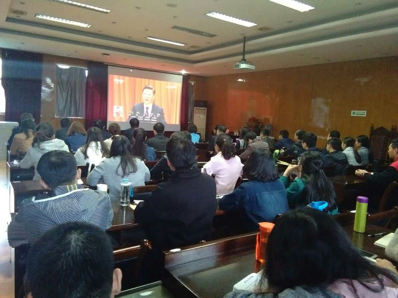 上午,公司党委委员、各党支部书记和支委与部分研究生党员40余人在模拟法庭集中收看了大会开幕式;下午,各系(中心)组织教师分别收看了大会开幕式,认真聆听了习近平总书记代表十八届中央委员会所作的大会报告。