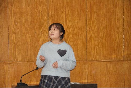 各科研团体以幻灯片的形式对研究项目内容及中期成果进行具体展示。各组科研项目各具特点,其汇报内容翔实,成果丰厚,充分显示出人文学子“关乎人文”的积极精神风貌。其中,15级员工朱婷以 “少数民族农民工随迁子女教育融入”为小组研究课题,在陕北四村进行实地调查,结合城镇化发展使得市场对劳动力的需求日益剧增的现状,以少数民族农民工作为调研主体,关注这一相对弱势群体的生活工作和受教育情况。15级员工陈子晗代表小组发表“农业产业化经营对农民收入影响”调研报告,以陕西省眉县猕猴桃现代农业示范区为例,分析农民收入结构的组成成分变化,分析影响因素,寻求理论框架支持。两名同学前期调研充分,理论力强,以优异的答辩获得了评委老师的肯定。