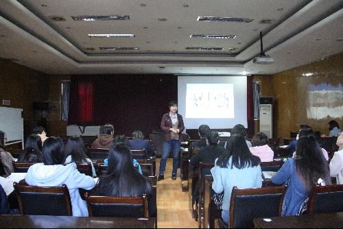 招聘会伊始,姜艳讲述了自己从离校到求职再到正式入职的经历,点明当下严峻的就业形势,与在座学子产生共鸣。接着,她从优创数据技术公司的概况说起,着重说明了优创的业务规模和发展前景,在职业规划上为学子描绘成长蓝图。此外,姜艳还介绍了公司的创新服务外包理念和跨文化交流平台,宣传了以“人性化”为核心的企业文化和价值观。而谈到员工们最关心的薪资待遇问题时,她用多媒体向大家展示了公司的薪酬福利体系和职业晋升路径,帮助大家有了更直观的认识。