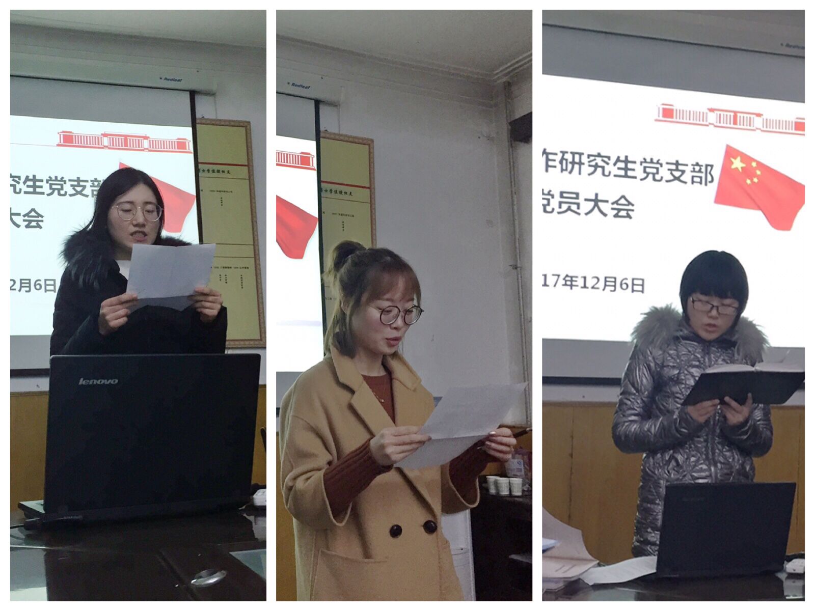为做好支部党员队伍建设工作,搞好新进党员和预备党员的引导教育工作。12月6日晚,社会工作研究生党支部在公司208会议室召开党员大会,党支部书记刘园园主持,全体党员及发展对象参会。大会议题主要有预备党员转正、预备党员接收、新进党员参会及理论学习纪律强调等。
