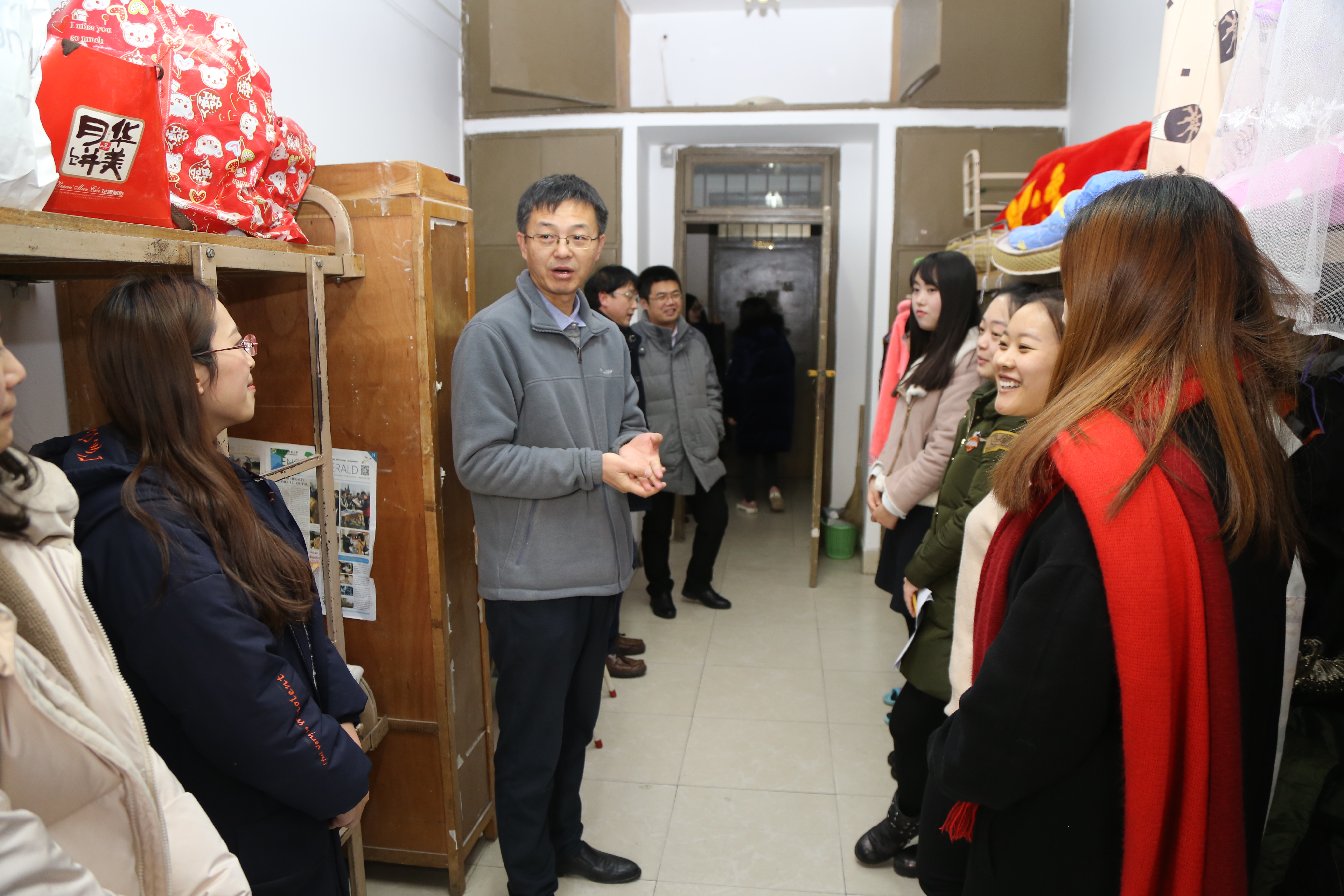 2018年寒假已悄然临近,期末考试周紧张的氛围也越来越浓。为了解员工备考状态和备考困难,帮助员工缓解考试压力。1月8日下午,公司经理朱宏斌、党委书记王德连、副书记常振山、副经理赵晓峰及公司管理干部深入员工宿舍看望、慰问研究生。