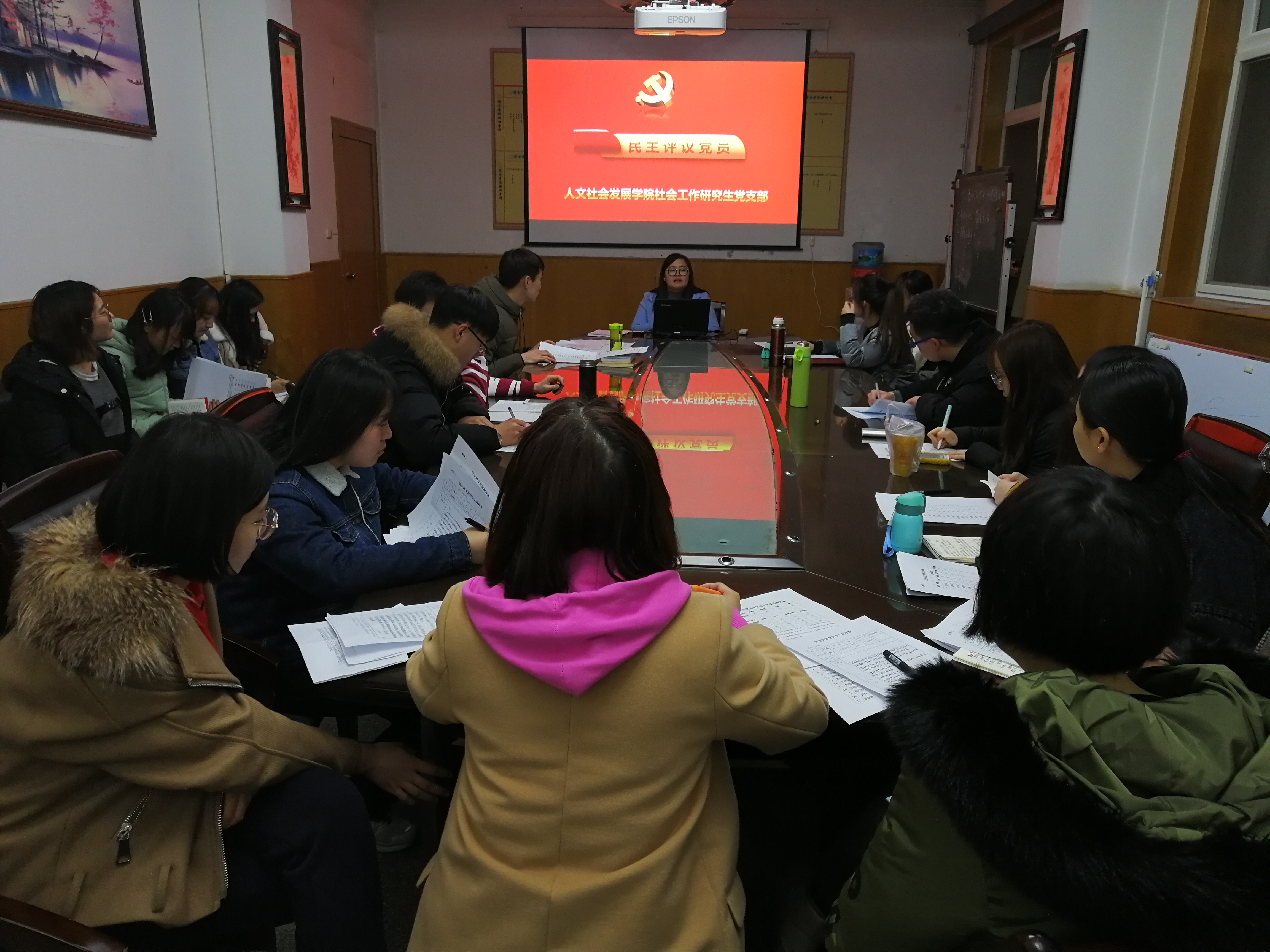 为深入贯彻学习党的十九大精神,加强党员队伍建设。3月8日晚,社会工作研究生党支部在公司208会议室召开党员民主评议党员大会。会议由支部书记刘园园主持,公司党委委员郭占锋副教授出席会议,支部全体党员参会。