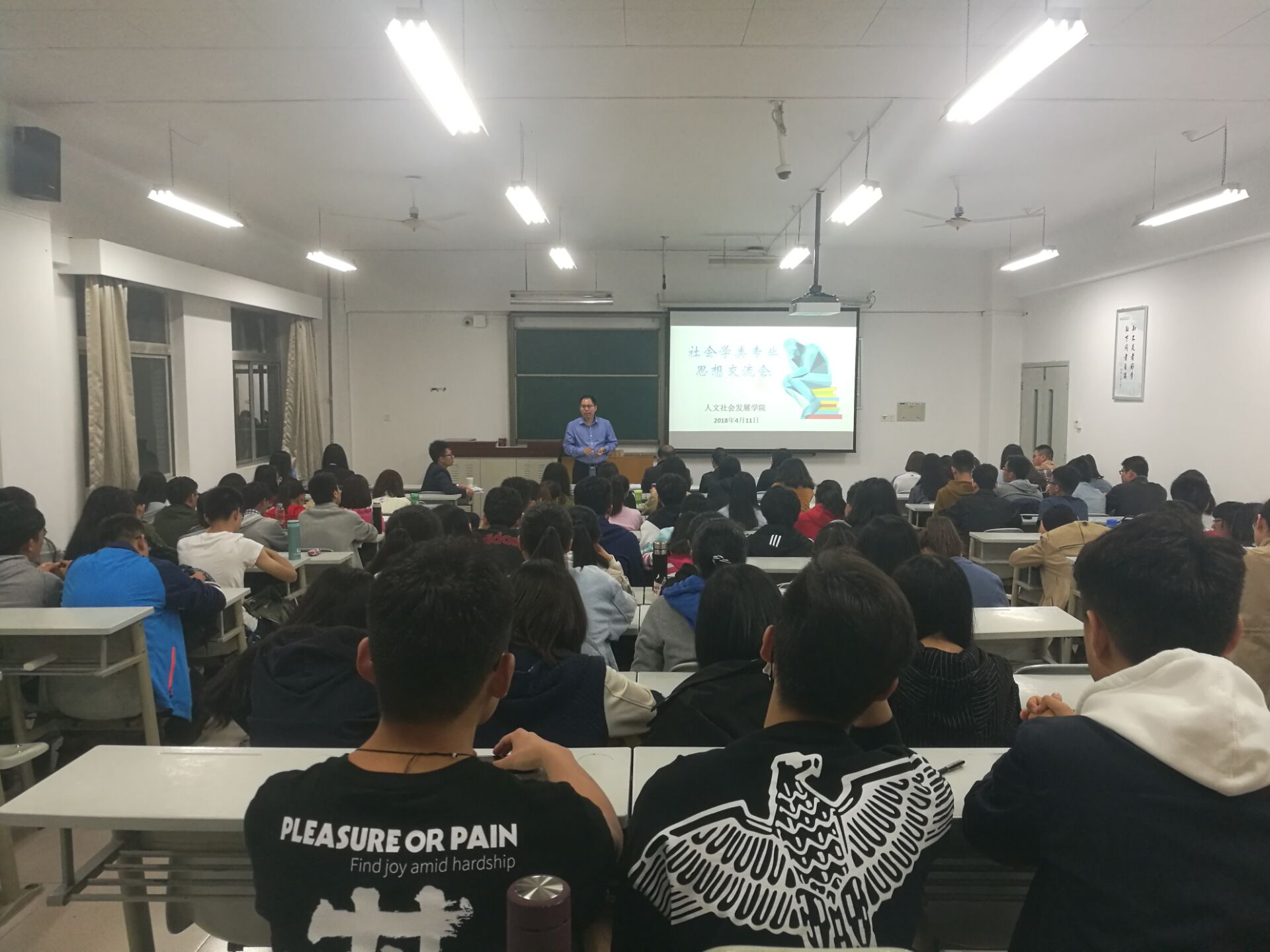 为引导2017级社会学类专业员工在即将到来的专业分流中明晰方向,做出适合自己的专业选择,公司于4月11日晚在8508教室举办社会学类专业思想交流会。社会学与社会工作系主任郭占锋副教授、副系主任邢成举、海莉娟、陈航英等社会学类专业老师以及2014级4名保研员工参加了本次交流会。