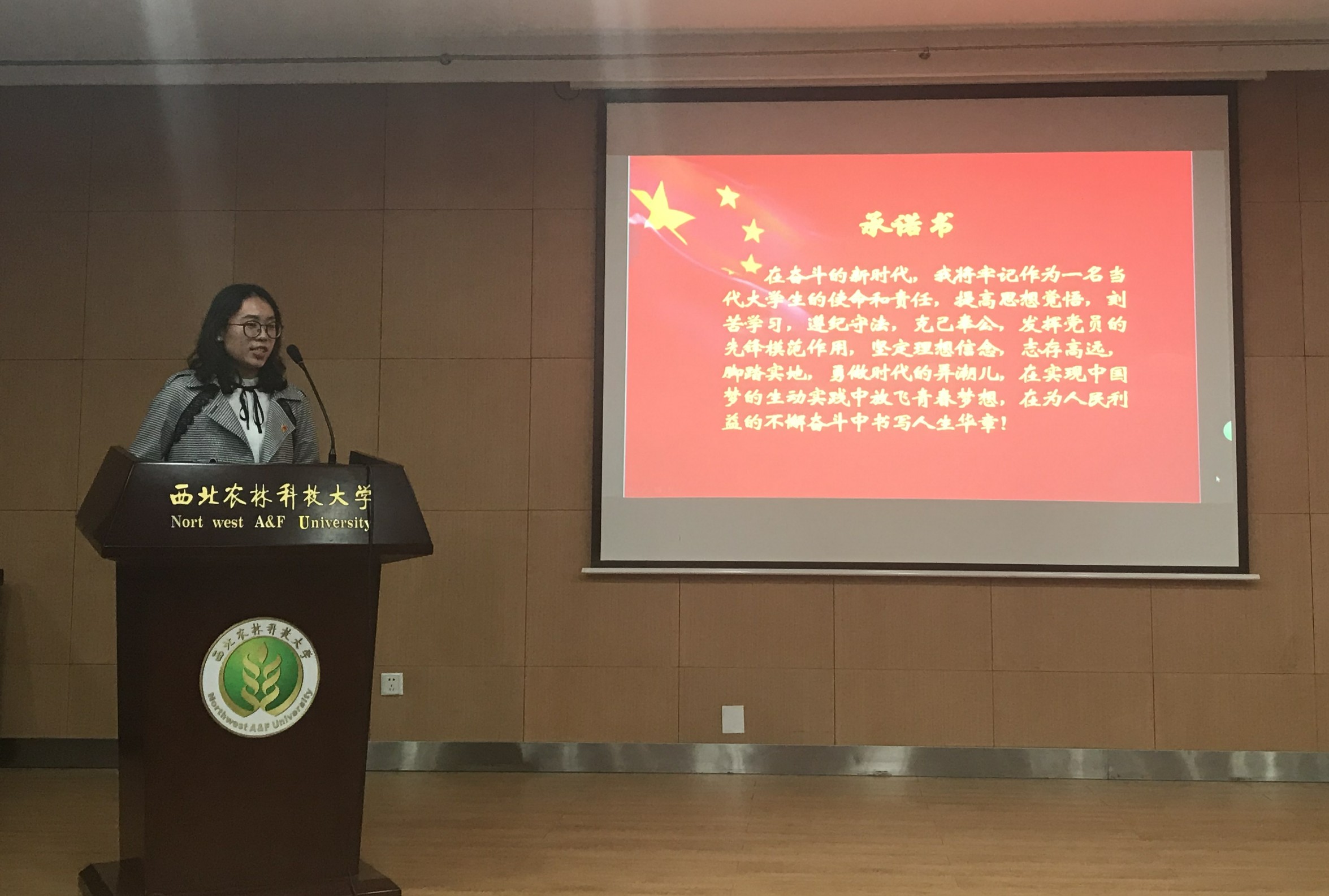启动仪式在庄严的国歌声中拉开帷幕,辅导员穆闯录宣读 “亮身份•践承诺•树形象”“主题实践活动通知。王德连为全体学工干部和员工党支部书记佩戴党徽,支部书记为支部内全体党员佩戴党徽。党员代表石佩颖带领全体党员重温入党誓词。法学本科生党支部茹珂楠代表全体员工党员做出:“在奋斗的新时代,我将牢记作为一名当代老员工的使命和责任,提高思想觉悟,刻苦学习,遵纪守法,克己奉公,发挥党员的先锋模范作用,坚定理想信念,志存高远,脚踏实地,勇做时代的弄潮儿,在实现中国梦的生动实践中放飞青春梦想,在为人民利益的不懈奋斗中书写人生华章!”的承诺。