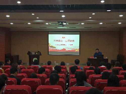 由“百年沧桑,一盘散沙,多方寻找民族救亡之路”到“大浪淘沙,苦难辉煌,担起民族救亡历史重任”,再到“百年复兴,不忘初心,建设社会主义现代化强国”,王德连以近代中国所经历的战争苦难为开端,以“蒋廷黻之问”为引导,从洪秀全到康梁到孙中山再到共产党的民族救亡之路,向同学们说明了中国共产党是建立在中华民族百年救亡、百年担当之中合理性、合法性、有担当的政党,是时刻牢记为人民谋幸福、为民族谋复兴的政党。不忘初心,方得始终,王德连从党的发展历程、党的苦难辉煌介绍了何为共产党员的初心,介绍了共产党为什么能带领中国人民走向复兴。他号召全体员工在实践中不忘初心、践行誓言,要加强对自身的思想引领、理论灌输,要始终牢记党员身份,明确宗旨,规范言行,争做合格党员。