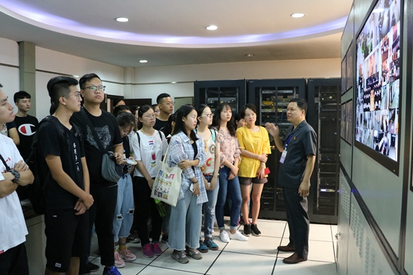 冯主任随后带领同学们走进了法院监控室,让同学们近距离的观看了法院内网系统监督,庭审直播系统的建设还有法律裁判文书网对法官的监督,充分向同学们展示了如今法律监督机制的健全与完善。