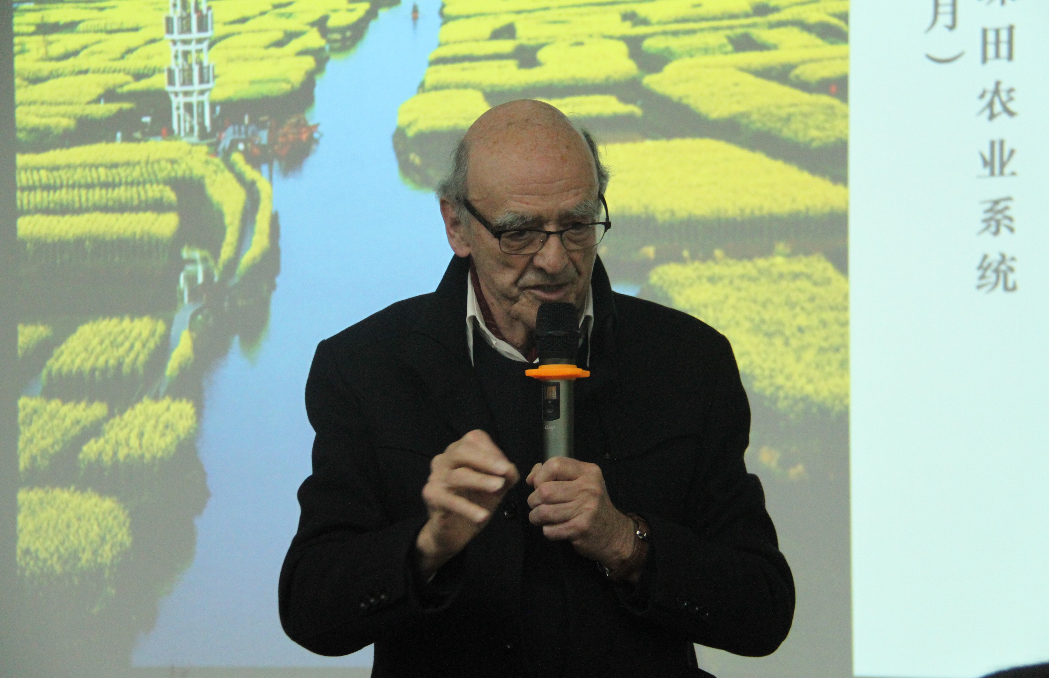 紧接着,通过分享其在中国拍摄的关于农业生态系统的照片及案例,如浙江的青田稻鱼共生系统、云南红河哈尼稻作梯田系统、江西万年传统稻作文化系统等,托尼•弗勒教授生动形象地向在座师生展示了中国农业遗产体系,他指出,在当地政府的支撑和GIAHS的称号的作用下,中国农业遗产体系的现代化趋势十分良好,而农村地方适应能力强,并且积极自发组织,为农业遗产体系的发展做出了巨大的贡献,在多方的共同努力下,多个乡村在农业现代化上取得了巨大的成功,这不仅是农业遗产体系的胜利,也是人类与生态体系的完美合作。
