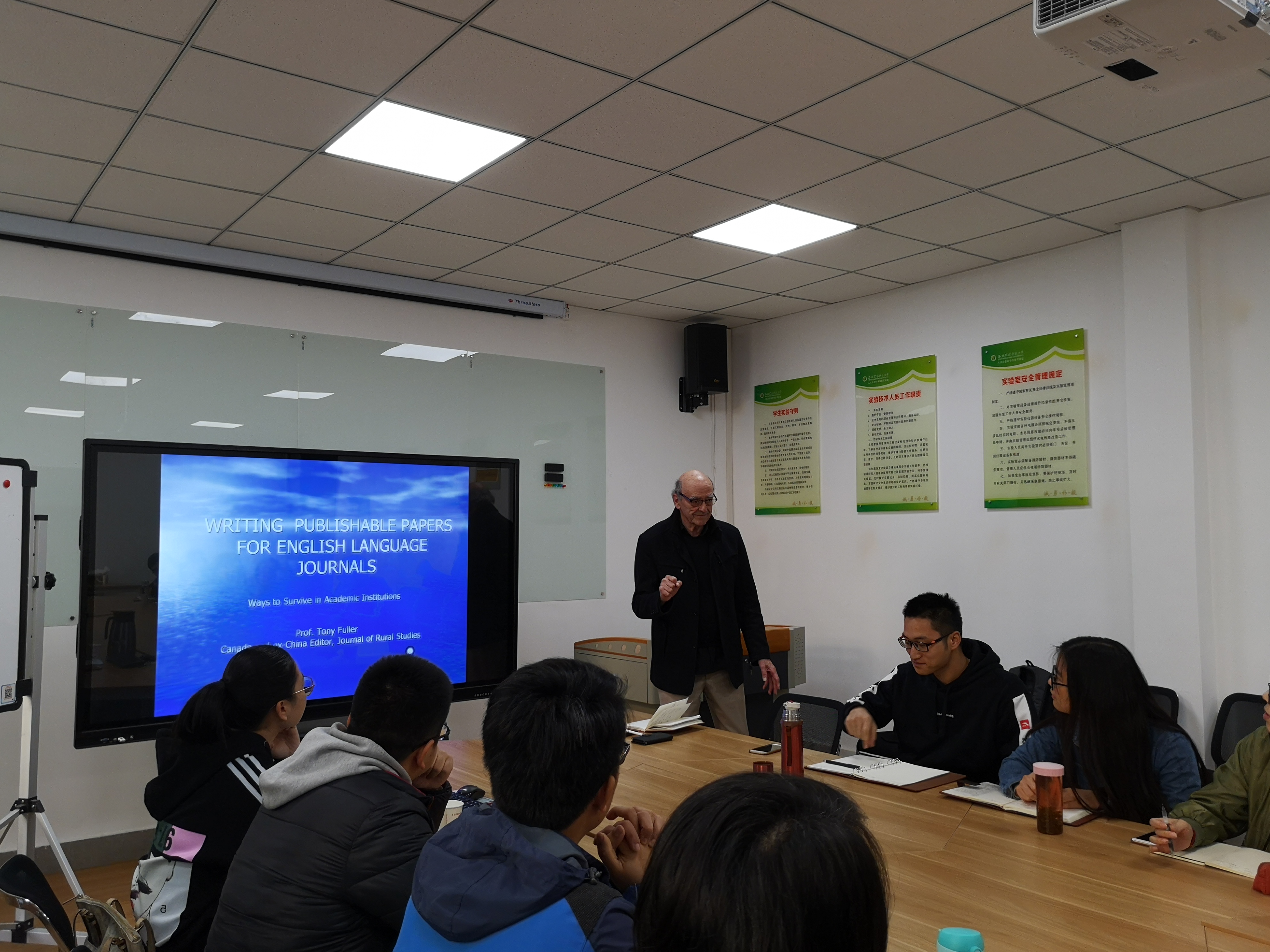 11月2日下午,托尼•弗勒教授为青年教师和高年级学术型研究生组织了一个“学术论文写作与发表”研讨工作坊,指导大家如何写作可以发表的英文论文。随后两天时间内,多位青年教师与其展开了一对一的论文讨论和交流,托尼•弗勒教授热心帮助他们修改和完善正在写作的英文学术论文。此行之前,他已通过邮件阅读了部分教师的稿件,并进行了部分论文的修订和润色。托尼•弗勒教授此次来访为公司的学术写作与发表提供了实质性的帮助,师生均非常感激