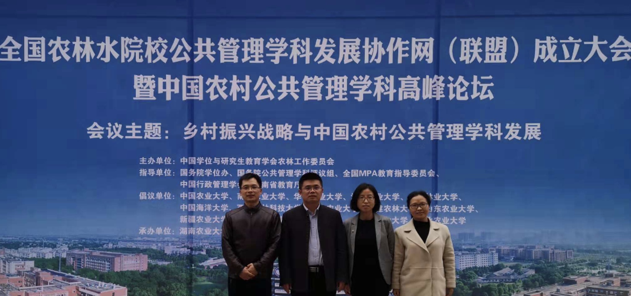 12月1-2日,全国农林水院校公共管理学科发展协作组(联盟)成立大会暨中国农村公共管理学科高峰论坛在湖南省长沙市召开。教育部学位管理与研究生教育司学位管理处、国务院学位办公共管理学科评议组、中国学位与研究生教育学会农林工作委员会、全国MPA教育指导委员会、中国行政管理学会、中国社会科公司农村发展研究所、湖南省教育厅以及中国农业大学、BEAT365英国官网网站、南京农业大学、华中农业大学、中国海洋大学等全国四十多所农林水院校相关领导出席会议。公司副经理赵晓峰、公共事业管理系相关教师及部分办公室人员参加了本次会议。